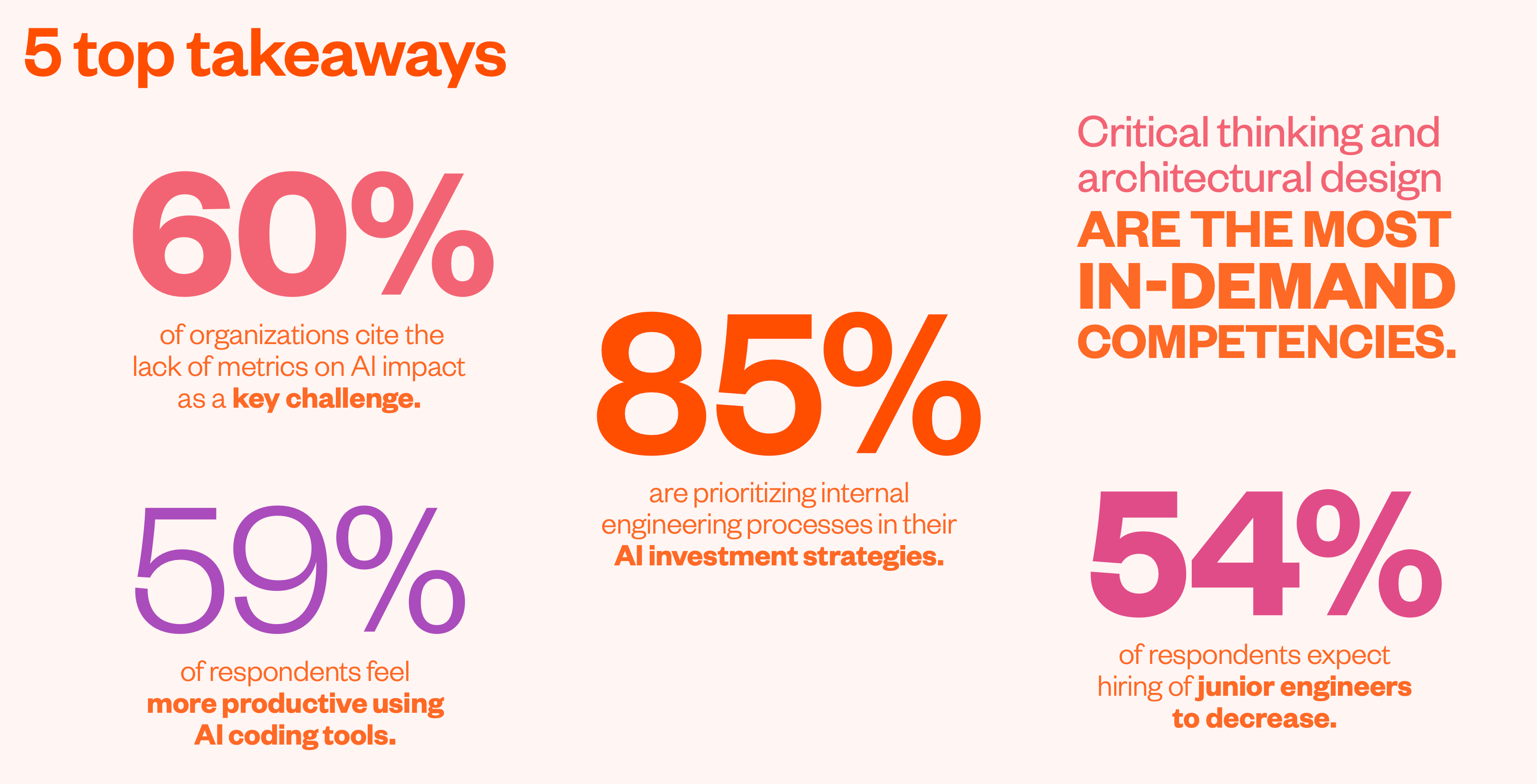 Forget “learning to code faster.” Leaders now value critical thinking (43%) and architectural design (34%) more than ever. In plain words: AI can write functions, but it still can’t decide what the system should look like. The rise of “agent managers” and prompt engineers (a.k.a. “AI whisperers”) proves this point.